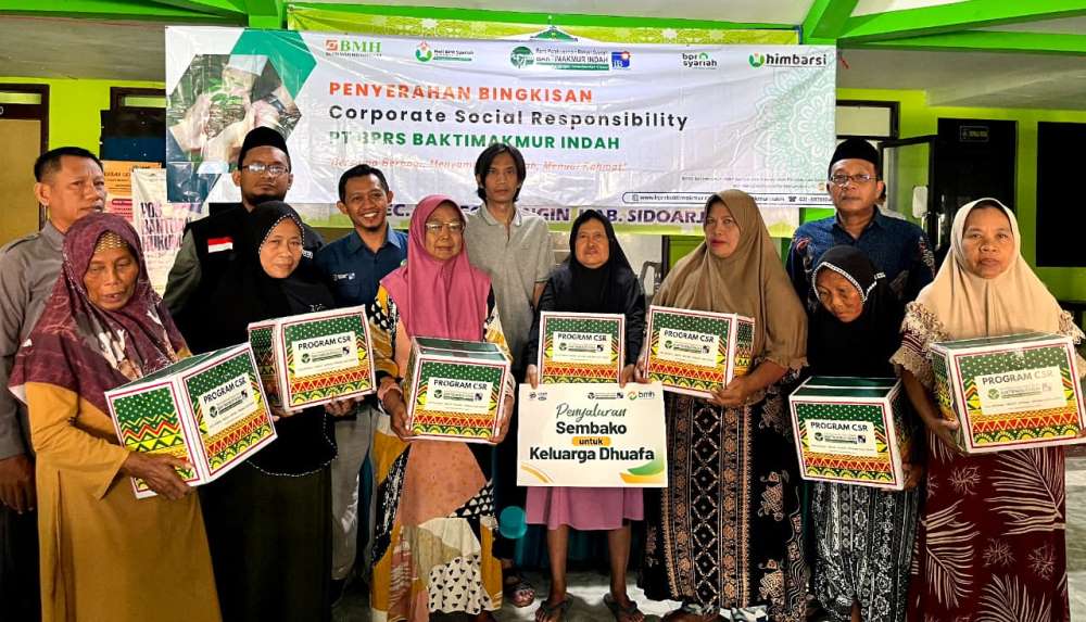 Adapun paket CSR Sembako ini terdiri dari beras punokawan 5 Kg, Gula manis Kita 1 Kg, Minyak Goreng Kita premium 1 liter, Teh tong tji, dan mie telur. BPRS Baktimakmur Indah menggandeng Laznas BMH Sidoarjo dengan jumlah penerima manfaat sebanyak 1.285 yang tersebar di Wilayah Sidoarjo , Surabaya dan Mojokerto.